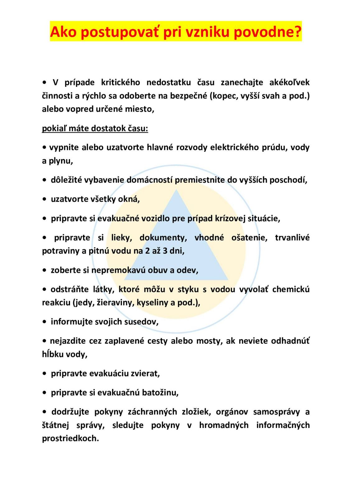 Opatrenia pri vzniku povodne